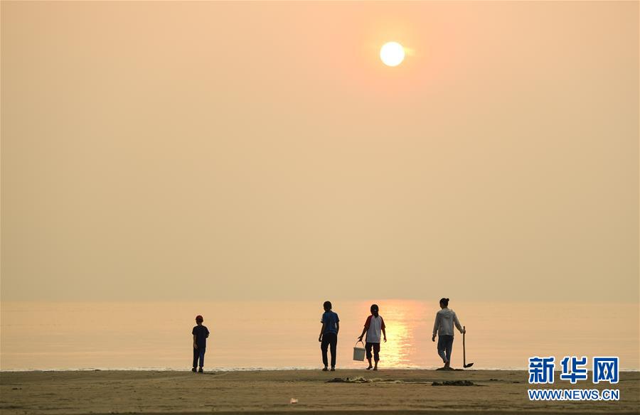 课外时间,林小恋(右一)和学生们在广东徐闻县北莉岛沙滩上游玩(9月2日摄)。新华社记者邓华 摄