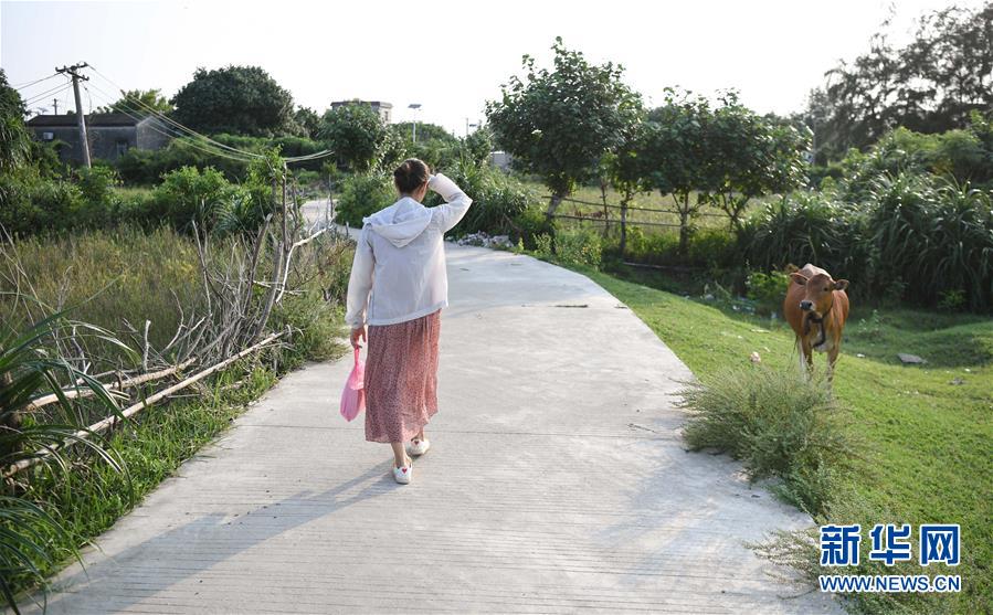 在广东徐闻县北莉岛,开学第一天放学后,林小恋走在去学生家家访的乡间小路上(9月1日摄)。新华社记者邓华 摄