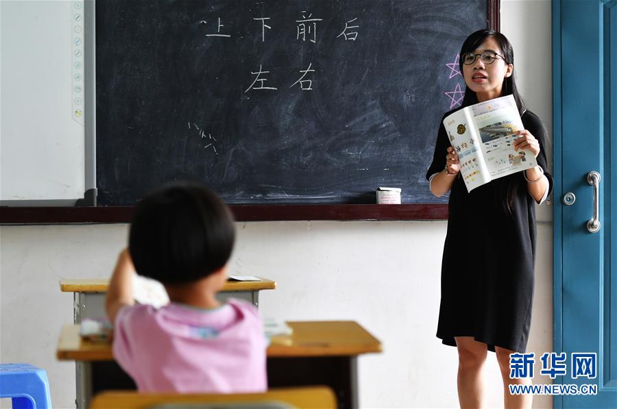 在永泰县红星乡礼柄小学,黄丽珠老师给唯一一名学生上语文课(9月8日摄)。
