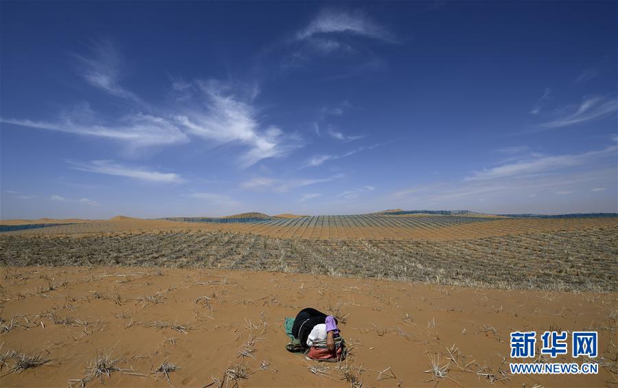 一名治沙工人在沙漠里休息(9月7日摄)。 新华社记者 王鹏 摄