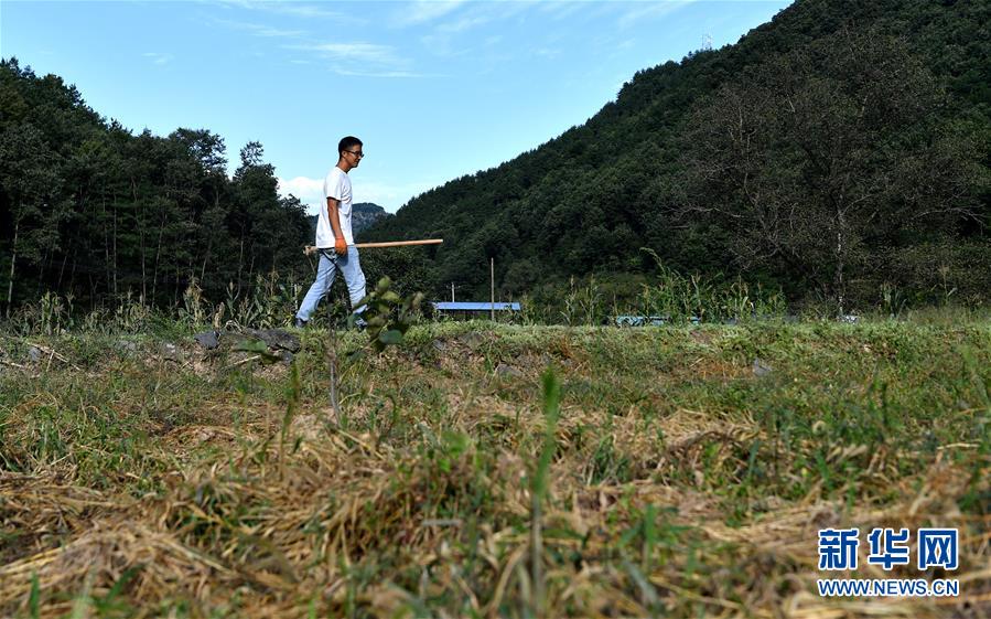 王新富走过被洪水冲毁的药材地(9月8日摄)。 新华社记者 刘潇 摄