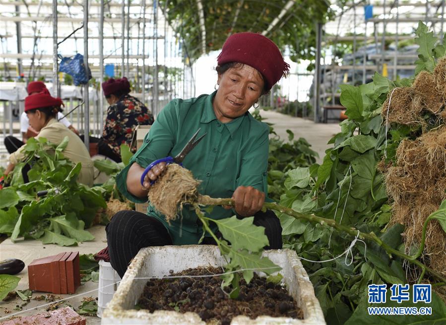四川省凉山彝族自治州昭觉县四开乡好谷村的阿尔衣呷在家附近的涪昭现代农业产业园内务工(8月10日摄)。 当前,四川脱贫攻坚进入决战关头,最后的贫困堡垒全部位于大凉山腹地。然而近年来这里大部分青壮年外出务工,留守家园的妇女成为大凉山的重要劳动力。针对这一现象,各级政府多措并举,探索打造妇女居家灵活就业与传统优势手工业联动发展的模式,谋划了传统手工艺、公益性岗位、就近产业园务工等一系列适合妇女就业的举措。大凉山的妇女用勤劳的双手,撑起脱贫攻坚战场的“半边天”。 新华社记者 刘坤 摄