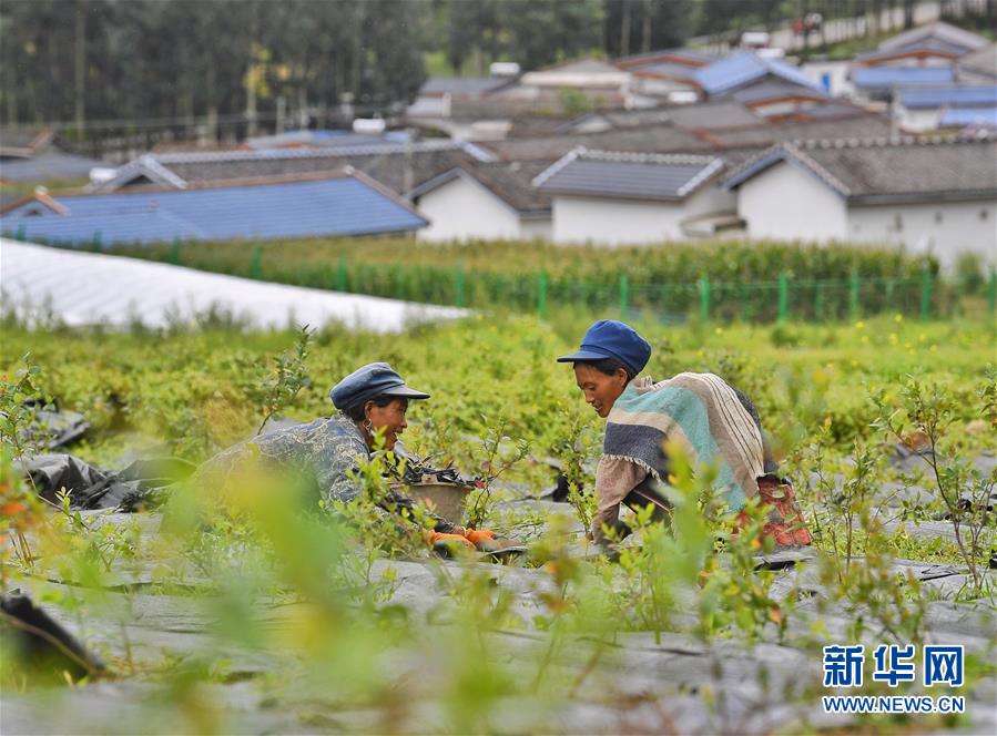 8月13日,四川省凉山彝族自治州布拖县拖觉镇老吉村的妇女在蓝莓种植基地内务工。 当前,四川脱贫攻坚进入决战关头,最后的贫困堡垒全部位于大凉山腹地。然而近年来这里大部分青壮年外出务工,留守家园的妇女成为大凉山的重要劳动力。针对这一现象,各级政府多措并举,探索打造妇女居家灵活就业与传统优势手工业联动发展的模式,谋划了传统手工艺、公益性岗位、就近产业园务工等一系列适合妇女就业的举措。大凉山的妇女用勤劳的双手,撑起脱贫攻坚战场的“半边天”。 新华社记者 刘坤 摄