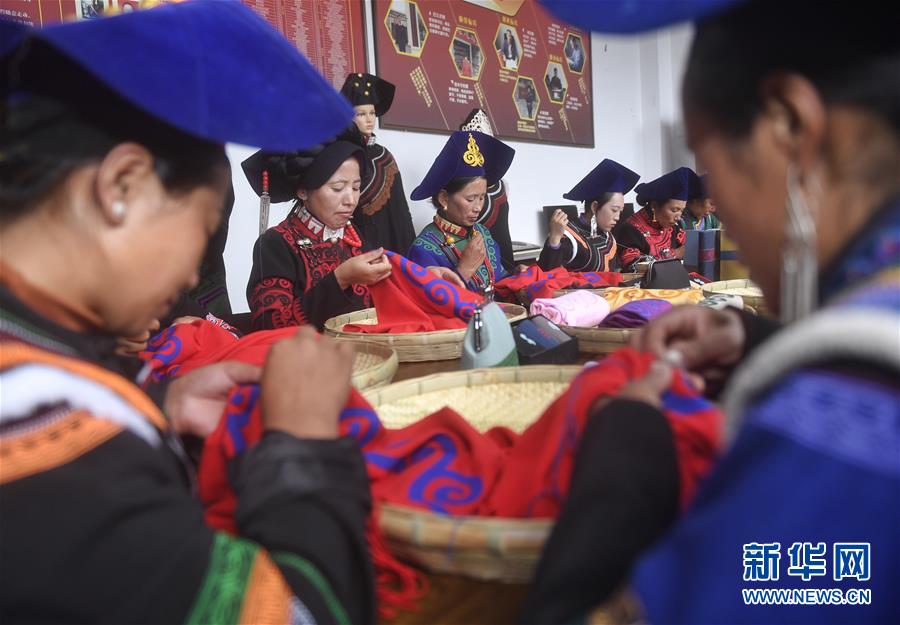 凉山彝族自治州喜德县冕山镇小山村的绣娘们在一起刺绣(9月11日摄)。 当前,四川脱贫攻坚进入决战关头,最后的贫困堡垒全部位于大凉山腹地。然而近年来这里大部分青壮年外出务工,留守家园的妇女成为大凉山的重要劳动力。针对这一现象,各级政府多措并举,探索打造妇女居家灵活就业与传统优势手工业联动发展的模式,谋划了传统手工艺、公益性岗位、就近产业园务工等一系列适合妇女就业的举措。大凉山的妇女用勤劳的双手,撑起脱贫攻坚战场的“半边天”。 新华社记者 刘坤 摄
