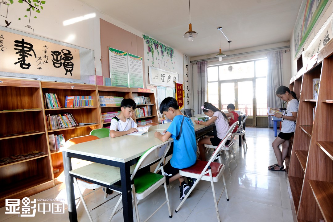 刚刚过去的整个暑假,位于山西省柳林县金家庄村的览虫书屋都比平常开得早、关得晚,来这里读书的孩子们有时一待就是多半天。这个深藏于吕梁山西麓的小书屋,也藏着高海岩和闫丽夫妇的梦想。2015年11月,高海岩和闫丽大学毕业回乡当老师后发现,村里没有图书馆,孩子们课后没有读书的地方,便萌生了开书屋的想法。夫妻俩取出账户中的8万元,租了四间平房,开起了这家书屋。书屋开了,却没人来,为此,闫丽想了很多办法。她筹办了“21天锤妈故事会”。为讲好故事,她飞去北京、广州等地学习取经,考取了绘本导师证、亲子导师证。图为孩子们在书屋看书。新华网发 刘亮亮摄