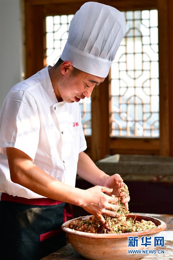 9月13日,在河南省商丘市夏邑县太平镇聂陈楼村,张旭在拌月饼馅。 张旭是河南省商丘市夏邑县太平镇聂陈楼村人,31岁的他已是河南老字号月饼品牌景盛昌的掌门人。 景盛昌创始于清咸丰十年(1860年),其吊炉月饼皮层酥松、馅料充实,独具特色。2007年,张旭高中毕业后便跟随父亲学习月饼制作技艺。除用现代化手法制作月饼外,他坚持传承古法月饼制作技艺,使用传统工艺自制的麦芽糖浆和面,经过选料、拌馅、制皮、包馅、成型等十多道工序,以传统的吊炉果木烘焙工艺精心制作而成。 “古法月饼制作技艺是一笔宝贵的文化财富,我愿意把它好好传承下去,留住乡土美食记忆。”张旭说。 新华社记者 冯大鹏 摄