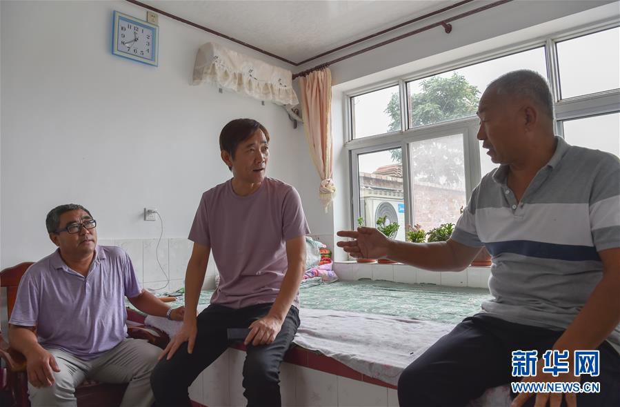 在天津市宁河区苗庄镇柳庄村,冯广有(中)和同事走访村民(9月14日摄)。新华社发(孙凡越 摄)