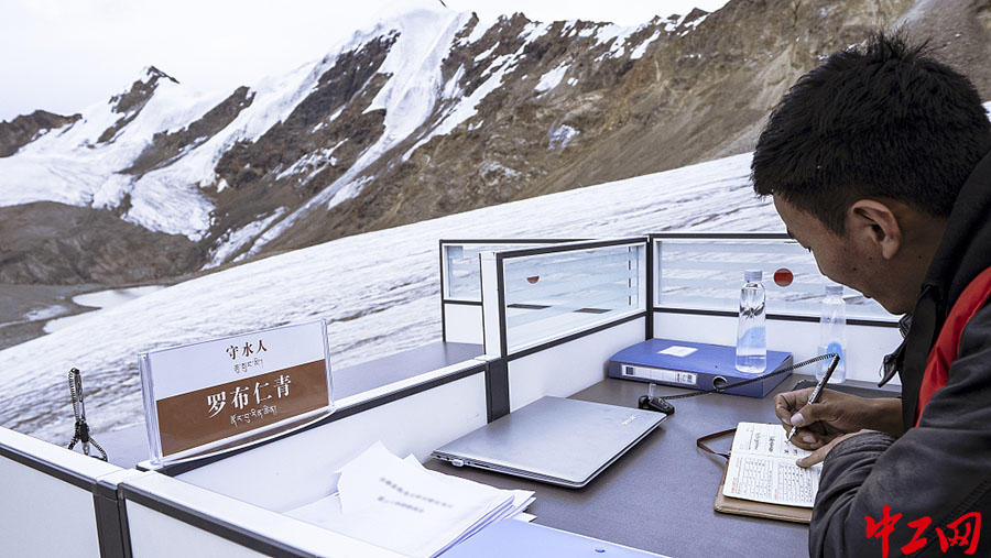 9月1日,西藏当雄县,仁青在办公位上工作,记录数据。(来源:视觉中国)