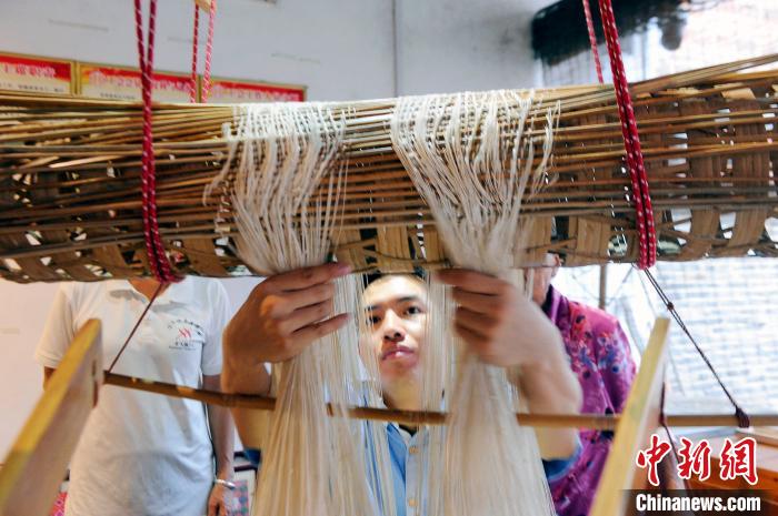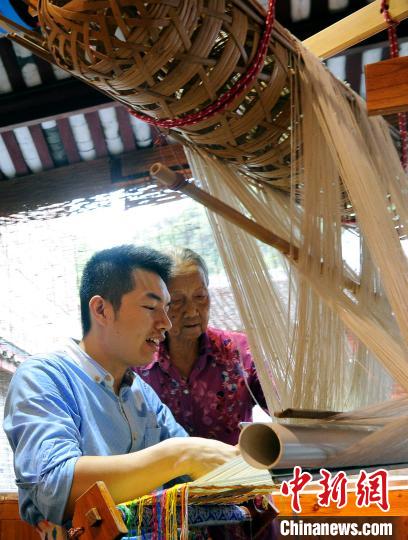 男耕女织,这是传统中国社会常见的家庭分工。然而,广西来宾市忻城县34岁的壮族汉子梁恒源却在女性擅长的织锦行当里挥洒自如。他从祖母和母亲的手里,接过针线和竹笼机(壮锦织布机),扛起壮锦织锦技艺的传承大旗,成为广西壮族自治区级非物质文化遗产项目忻城壮族织锦技艺代表性传承人,成了名副其实的“织郎”。他大胆创新,将时尚元素注入壮族织锦中,让千年壮锦“复活”,焕发出新的魅力。