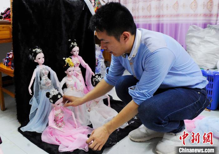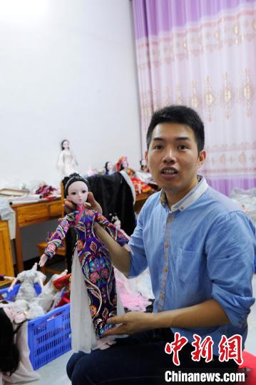 梁恒源展示用壮锦制作的越南奥黛“民族芭比娃娃”。 蒋雪林 摄