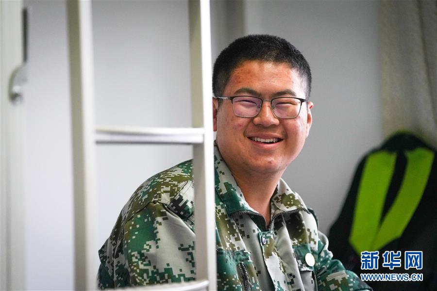 王帅在东北林业大学的宿舍中与同学们聊天(9月15日摄)。