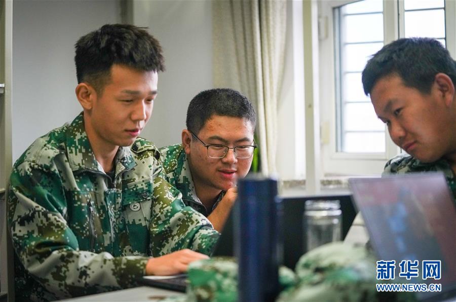 王帅(中)在东北林业大学的宿舍中与同学一起上网(9月15日摄)。新华社记者王松摄