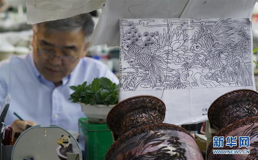 钟连盛在设计景泰蓝作品(9月15日摄)。 新华社记者 李欣 摄