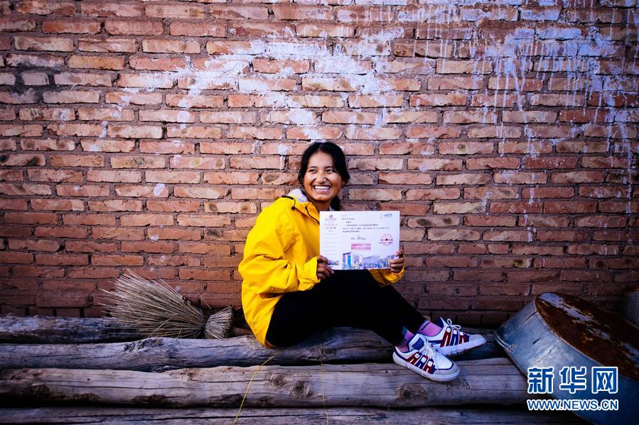 9月14日,在青海省化隆回族自治县金源藏族乡科上村,拉毛才让展示自己的大学录取通知书。新华社记者 刘金海 摄