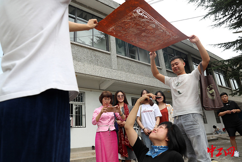 2020年9月21日,江苏南通,《南通蓝印花布印染技艺研修班》开班仪式暨“吴元新国家级技能大师工作室”揭牌仪式在南通大学举行。许丛军/视觉中国