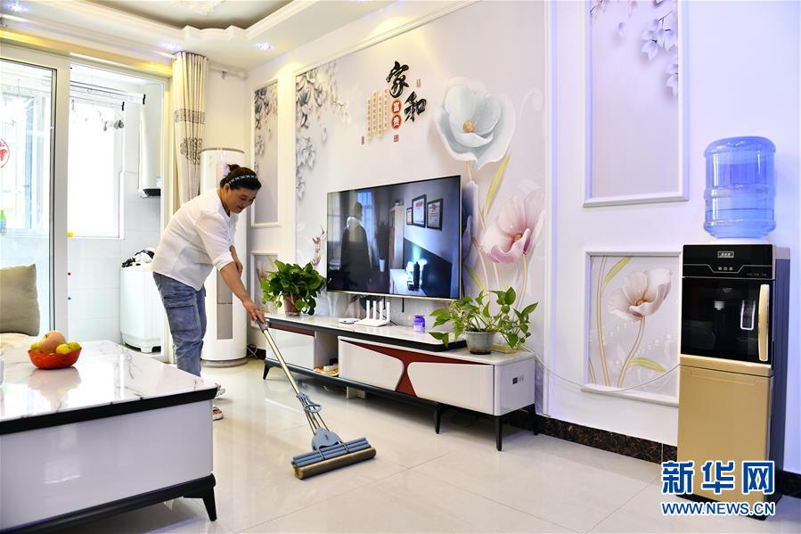 9月22日,在鄄城县董口镇黄河社区,刘月娥在家中打扫卫生。 新华社记者 郭绪雷 摄