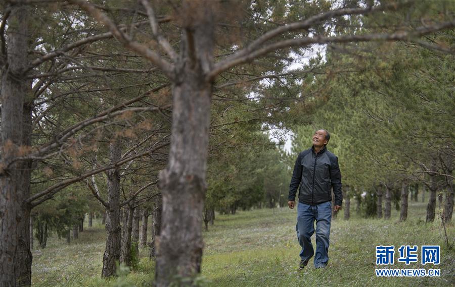 9月26日,齐军祥行走在树林中。 陕北榆林市靖边县龙洲镇深处有一座山叫齐山,当地人认为这里是附近齐姓人的老家。66岁的退休教师齐军祥居住在齐山的土窑洞里,20年来他植树修路,完成了绿化一座荒山的奇迹。 2000年,齐军祥因身体原因提前退休后,来到偏僻的齐山上,独居荒山土窑洞,并开始植树造林。期间,他拿出自己的全部收入,在3.5平方公里的土地上栽植了30多万株松树与柏树,修建了长达60公里、可以让车辆直接开上山顶的土路,打了14座淤地坝以及一口深达300多米的水井。 如今,山上的树苗已长成大树,有人要出资千万元购买,齐军祥一口回绝:“我不能卖,卖了连自己都对不住。我要把齐山的绿留给子孙后代。” 新华社记者 陶明 摄