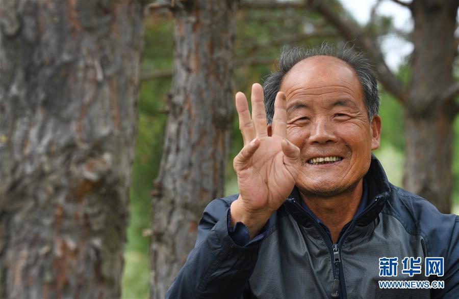 9月26日,齐军祥对参观的人员说:“栽下的30万棵树,一棵也舍不得卖。” 陕北榆林市靖边县龙洲镇深处有一座山叫齐山,当地人认为这里是附近齐姓人的老家。66岁的退休教师齐军祥居住在齐山的土窑洞里,20年来他植树修路,完成了绿化一座荒山的奇迹。 2000年,齐军祥因身体原因提前退休后,来到偏僻的齐山上,独居荒山土窑洞,并开始植树造林。期间,他拿出自己的全部收入,在3.5平方公里的土地上栽植了30多万株松树与柏树,修建了长达60公里、可以让车辆直接开上山顶的土路,打了14座淤地坝以及一口深达300多米的水井。 如今,山上的树苗已长成大树,有人要出资千万元购买,齐军祥一口回绝:“我不能卖,卖了连自己都对不住。我要把齐山的绿留给子孙后代。” 新华社记者 陶明 摄