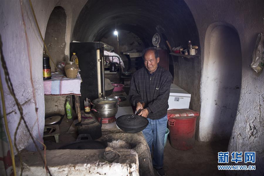 9月26日,齐军祥在土窑洞里做饭。 陕北榆林市靖边县龙洲镇深处有一座山叫齐山,当地人认为这里是附近齐姓人的老家。66岁的退休教师齐军祥居住在齐山的土窑洞里,20年来他植树修路,完成了绿化一座荒山的奇迹。 2000年,齐军祥因身体原因提前退休后,来到偏僻的齐山上,独居荒山土窑洞,并开始植树造林。期间,他拿出自己的全部收入,在3.5平方公里的土地上栽植了30多万株松树与柏树,修建了长达60公里、可以让车辆直接开上山顶的土路,打了14座淤地坝以及一口深达300多米的水井。 如今,山上的树苗已长成大树,有人要出资千万元购买,齐军祥一口回绝:“我不能卖,卖了连自己都对不住。我要把齐山的绿留给子孙后代。” 新华社记者 陶明 摄