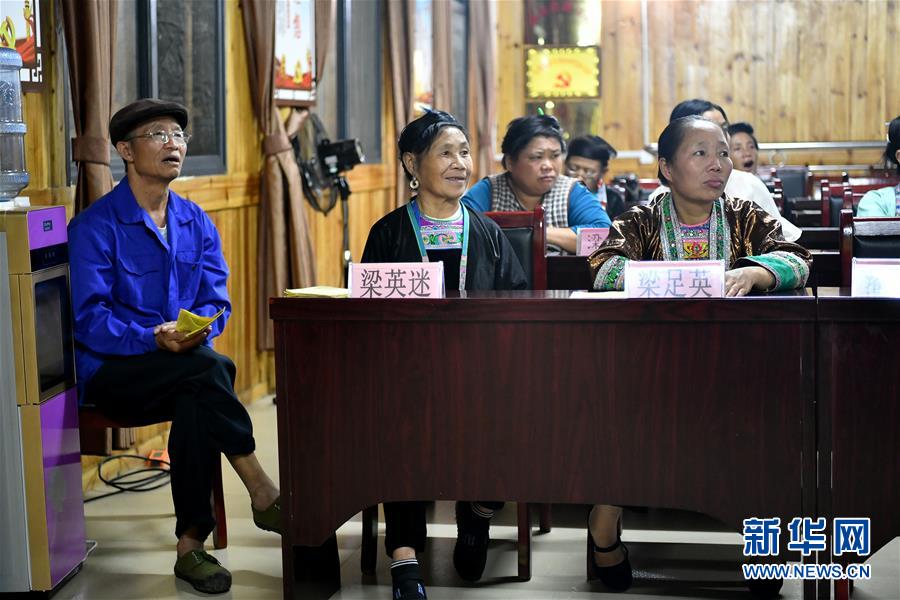 梁安合(左一)在陪同老伴梁英迷上夜校学习(9月14日摄)。 新华社记者 李鑫 摄