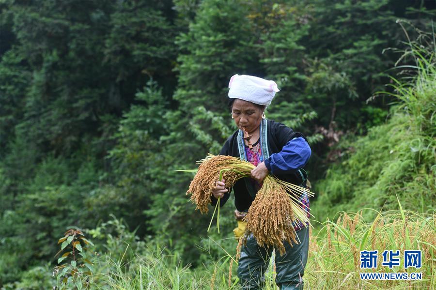 梁英迷在田间收谷子(9月14日摄)。 新华社记者 黄孝邦 摄
