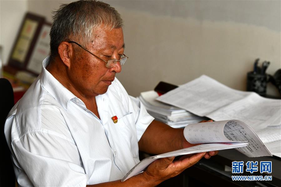 年介涛在家里翻阅烈士信息资料(9月15日摄)。
