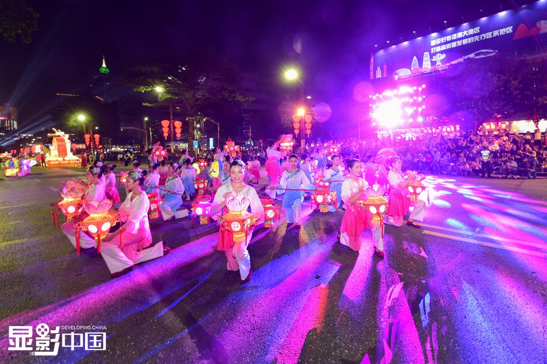 佛山彩灯俗称“灯色”,是佛山民间艺术与当地习俗结合而形成的工艺品,题材广泛,以喜庆丰收、吉祥纳福及戏剧人物故事为主要表现内容。图为2019年秋色巡游。新华网发 刘世辉摄