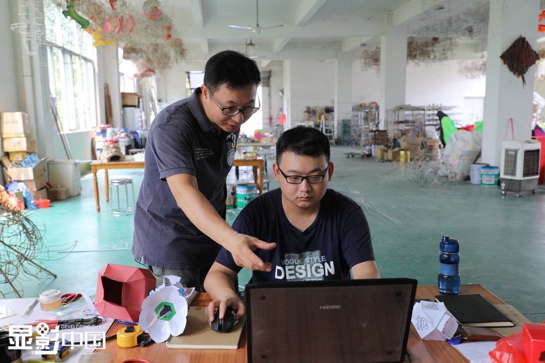黄宏宇与徒弟交流设计想法。