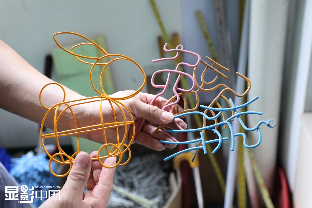 图为黄宏宇根据彩灯研发出的艺术家居饰品。
