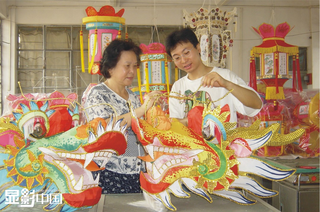 黄宏宇从小受母亲杨玉榕耳濡目染的影响,毕业后开始从事佛山彩灯创作,如今已是市级传承人。(资料图)