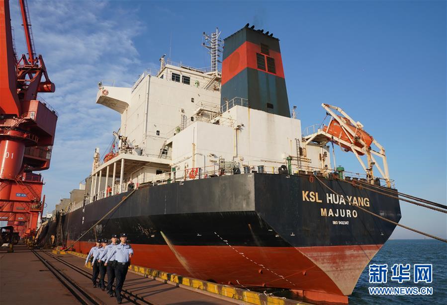 10月2日,河北黄骅出入境边防检查站民警在黄骅港综合码头巡逻。 长假期间,不少人依然坚守工作岗位,在忙碌中度过假期。 新华社记者 杨世尧 摄