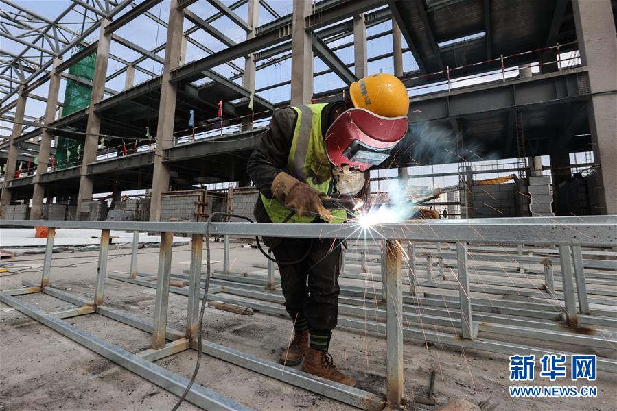 10月2日,在青海国际会展中心项目工地上,中建八局的建设者在进行焊接作业。 长假期间,不少人依然坚守工作岗位,在忙碌中度过假期。 新华社记者 吴刚 摄