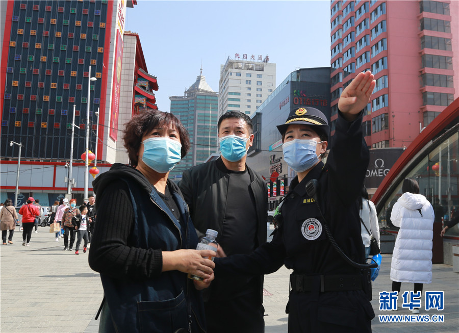 图为女子礼仪巡查特勤中队副队长聂霜为问路的市民提供帮助。新华网刘舒摄