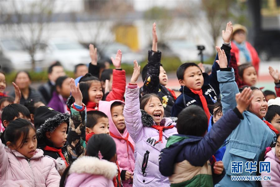 重庆市石柱土家族自治县中益乡小学的同学们在文艺演出现场与演员互动。当日,“我的中国梦——文化进万家”中国视协文艺志愿服务小分队走进中益乡小学,为师生们带来精彩的文艺表演(2019年12月12日摄)。新华社记者 王全超 摄