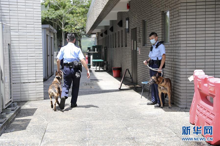 香港警犬队领犬员张仲然(左)带着警犬Loeska回犬舍(9月10日摄)。新华社记者 吴晓初 摄