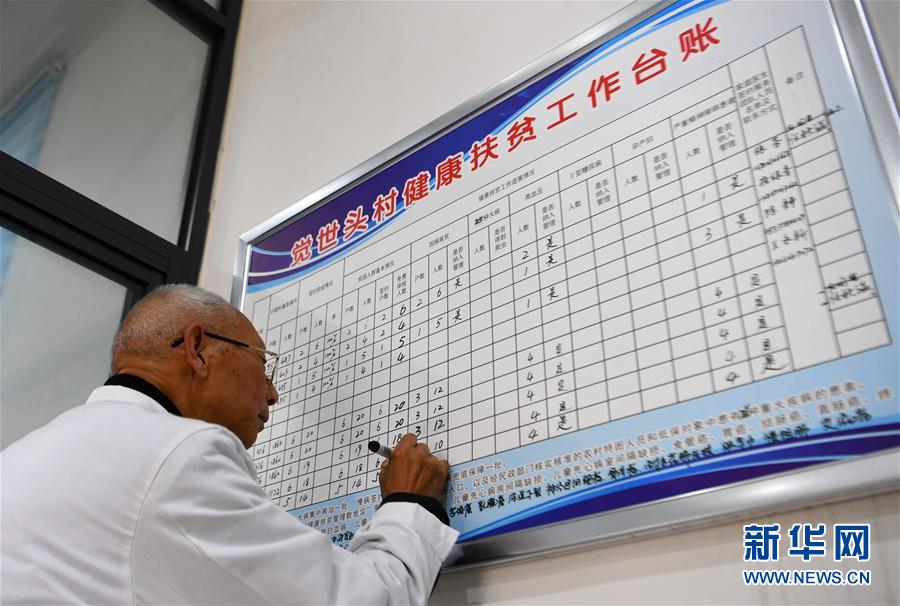 10月15日,在焦作市温县觉世头村卫生室,村医王永新在填写觉世头村健康扶贫工作台账。新华社记者 郝源 摄