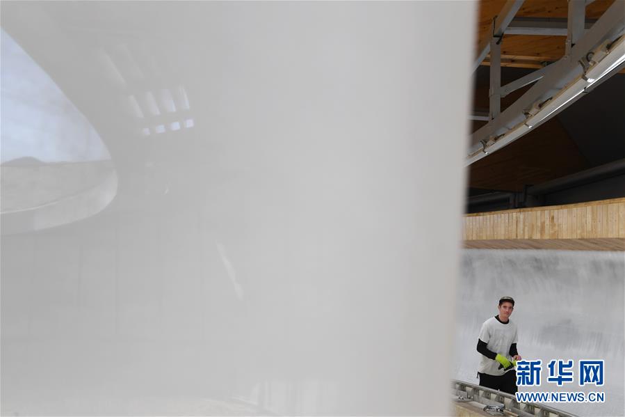 法国制冰师法比安在赛道巡查(10月18日摄)。 新华社记者 张晨霖 摄