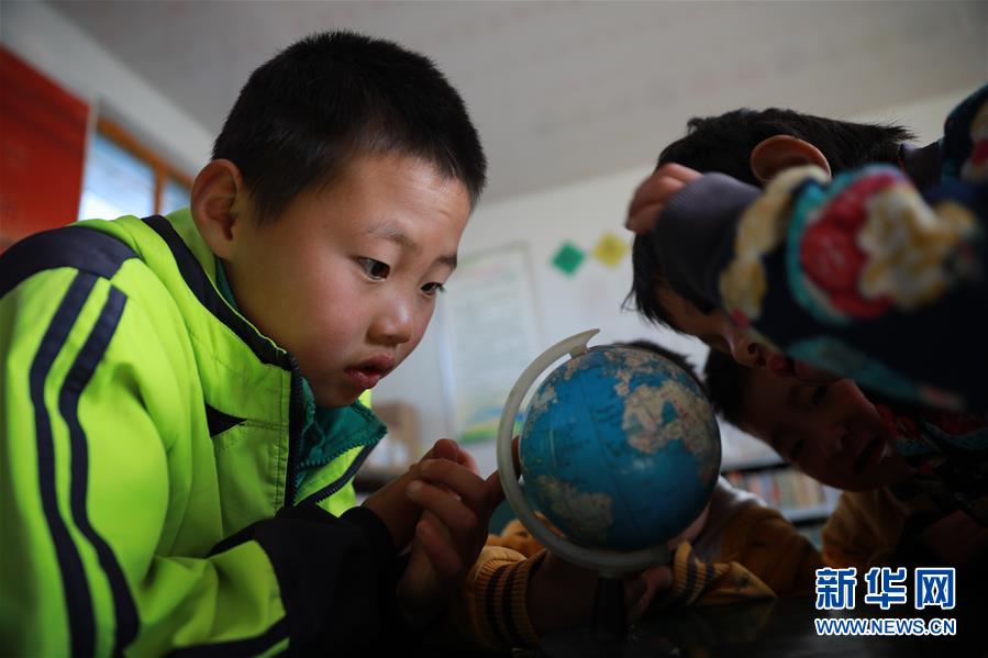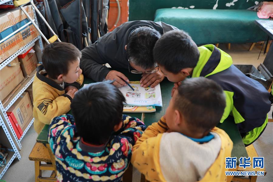 10月22日,王建林带孩子们一起读书。 新华社记者 杜哲宇 摄