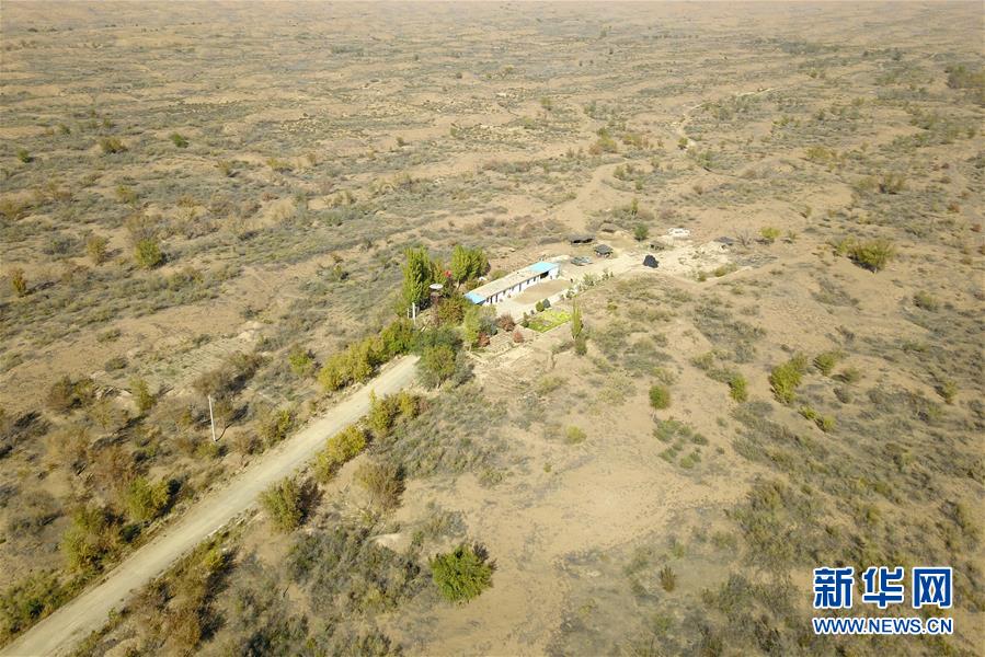 这是10月23日在武威市凉州区长城镇红水村拍摄的王天昌一家治沙住地(无人机照片)。 新华社记者 范培珅 摄