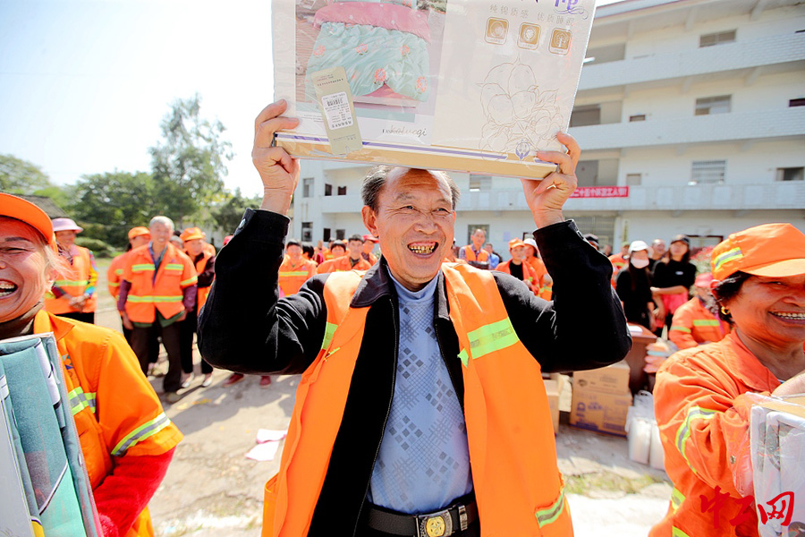10月25日,获胜后的江西省吉安市峡江县的环卫工人露出开心的笑容。(来源:视觉中国)
