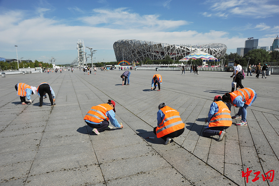 2016年09月20日,北京,奥体中心附近广场开始进行“最深度”的清理。(来源:视觉中国)