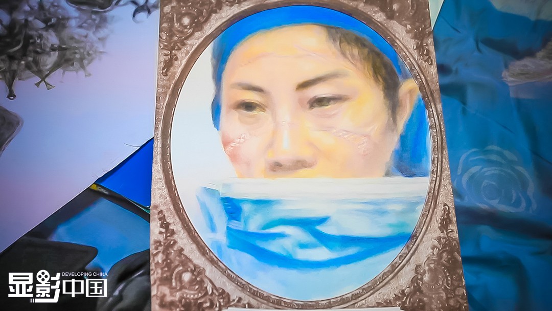 疫情期间,蒋永华在家创作了多幅武汉的医务人员的战疫画像。“就是想表达对医护工作者的敬意,希望有一天自己可以把画像送到他们的手中。”蒋永华说。