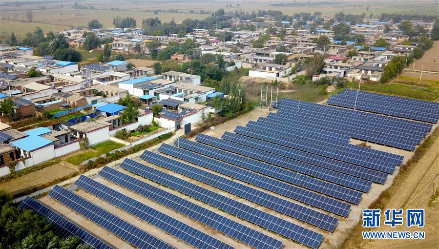 10月20日拍摄的河北省新河县刘秋口村光伏电站(无人机照片)。新华社记者 王晓 摄