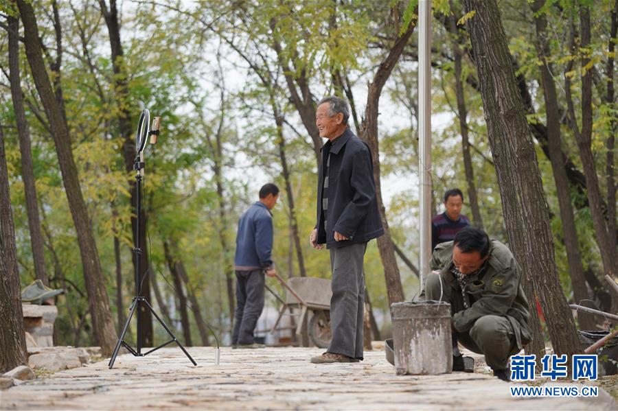 10月28日,李三平(中)在直播村里修路。 新华社记者 牟宇 摄