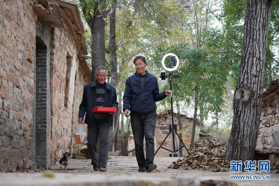 10月28日,李三平(左)和儿子李庆斌在直播转场途中。 新华社记者 牟宇 摄