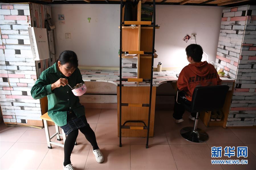 在巢湖学院宿舍里,程东东和妈妈刘香在吃午饭(10月19日摄)。 教室总在一楼,座位总是第一排,出门总有同学帮忙,轮椅后总有双温暖的手——从小学到高中,程东东身边始终有一群同学守护着他,传递着爱的“接力棒”。 2020年,程东东被巢湖学院录取,成为一名大学生。这场爱心接力在大学校园延续。 程东东2001年出生于安徽省广德市邱村镇,2008年被确诊为进行性肌营养不良症,逐渐失去行动能力,成为“渐冻人”。从2010年开始的10年间,由同学成立的三届帮扶小组用点点滴滴的爱心陪伴着程东东成长。 9月底,程东东开启了大学生活。在报到那天,巢湖学院安排车辆把程东东从广德接到了学校,并为程东东和母亲提供一间位于一楼的爱心宿舍。很快,程东东所在的班级成立“爱心帮扶小组”,40多名男生成为帮扶小组的成员,轮流陪伴、帮扶程东东。 如今,圆梦大学的程东东在新同学、新老师的关爱下,过着属于他的大学生活,轮椅上的他依然阳光自信。 “希望未来能用自己的力量去回报社会,创造更美好的生活!”程东东说。 新华社记者 刘军喜 摄