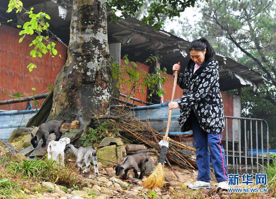 10月30日,杨珍在羊圈周边打扫卫生。 新华社记者 魏培全 摄