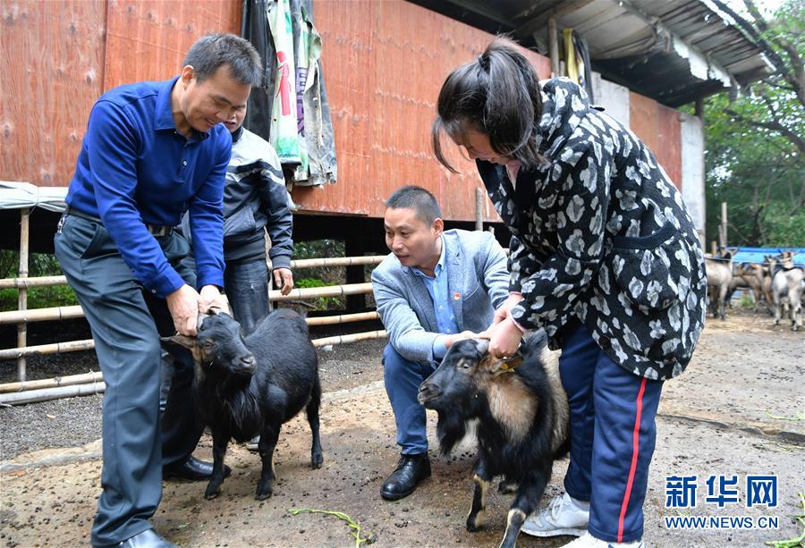 10月30日,闽侯县农业局专家(左一)和大湖乡的干部为杨珍进行养殖技术指导。 新华社记者 魏培全 摄