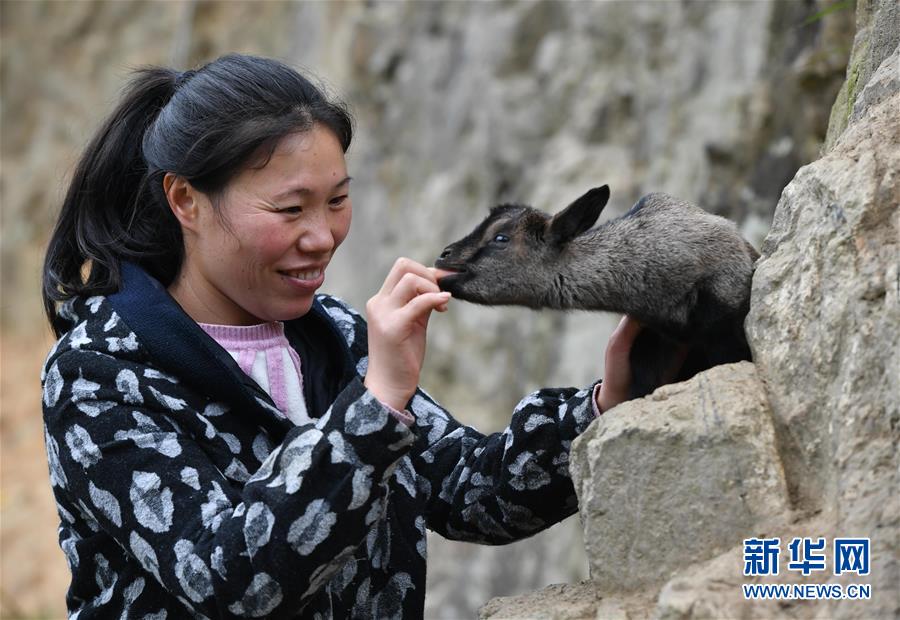 10月30日,杨珍在给小羊羔喂食。 新华社记者 魏培全 摄