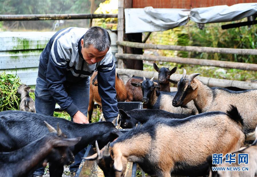 10月30日,杨珍的爱人刘用海在给羊喂食。 新华社记者 魏培全 摄